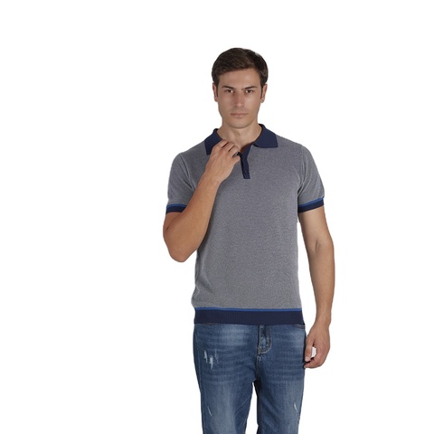 جودة عالية من الشركة المصنعة الإيطالية كم طويل بلون واحد رمادي تريكي رقبة تيشيرت كاجوال تصميم فارغ غزل مصبوغ للرجال