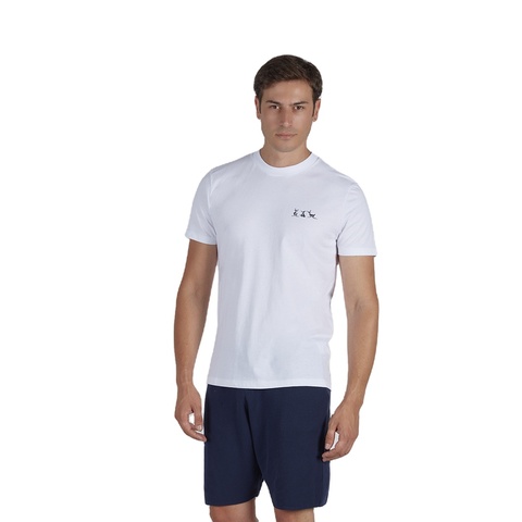 İtalyan yapımı rahat erkek tişört 100% pamuk düz beyaz kısa kollu ve yuvarlak boyun-jersey kumaş katı desen